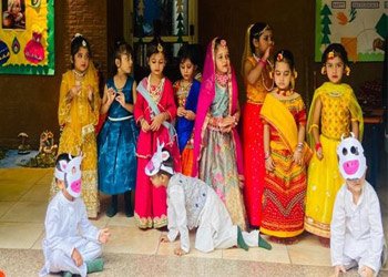 Krishna was born on this radiant night, He illuminated the world with love and light. With a flute in hand, gentle and kind, He brings us joy and tranquility of mind.Our school commemorated Janmashtami with immense joy and reverence. Young Krishna and the little Gopis enhanced the charm of the event. The program featured Krishna songs and bhajans, making it an enchanting and unforgettable experience for everyone.